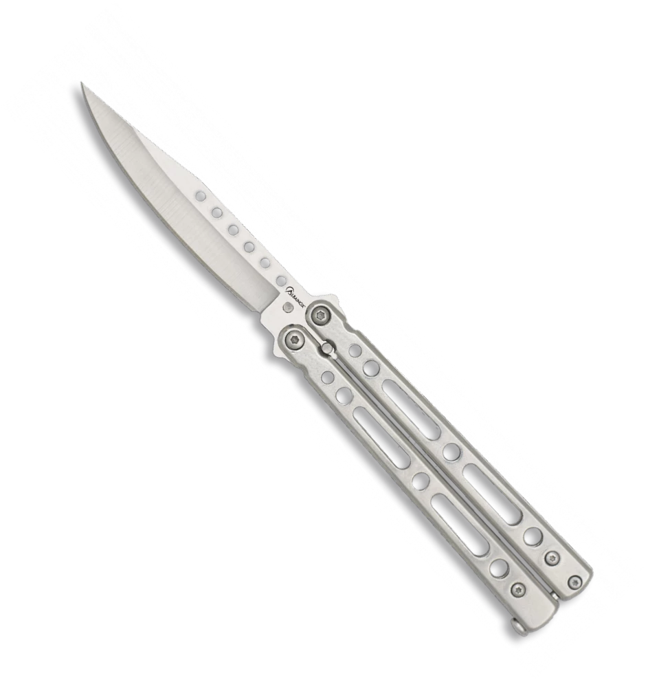 Couteau papillon Albainox 02212, lame en acier 3Cr13Mov longueur 9.6 cm. Manche ajouré en acier.