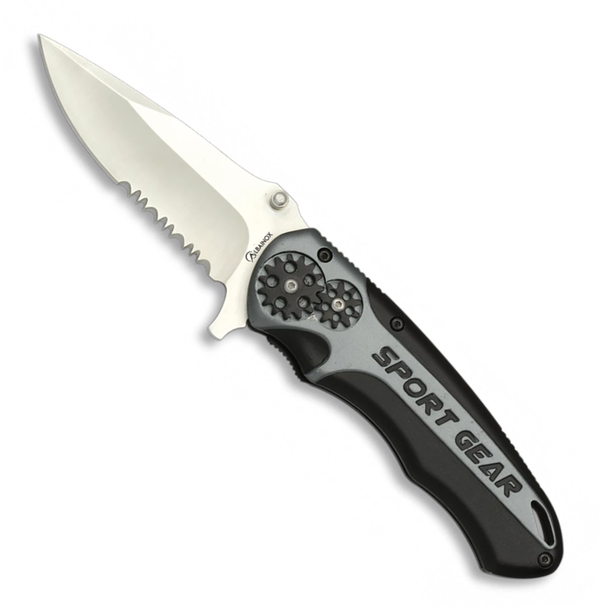 Couteau pliant Albainox Sport Gear gris 19688, lame acier inox longueur 8.5 cm, manche en aluminium.