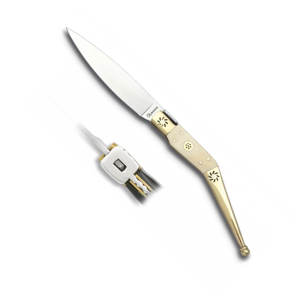 Couteau pliant CATALAN : lame inox longueur 8.2 cm, manche en os et laiton, virole laiton.