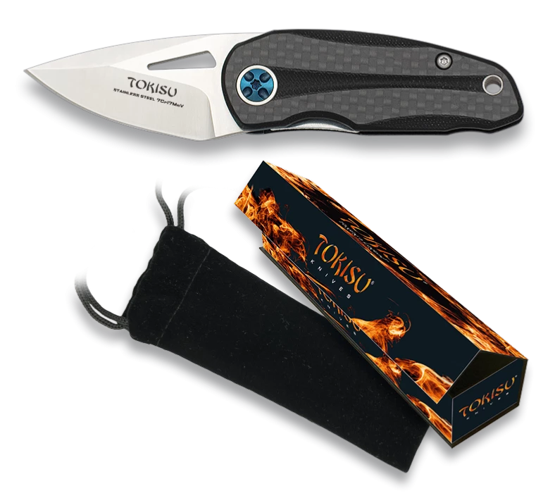Couteau pliant TOKISU 18684, lame straight back en acier 7Cr17Mov longueur 5 cm, manche G10 noir. Pivot en titane avec roulement à billes.